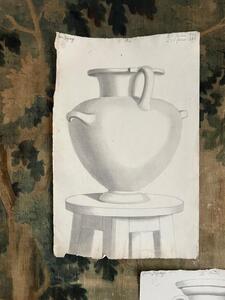 2 dessins à la mine de plomb. Sur papier. Études de vases néoclassiques. Vers 1900. 48 cm x 32 cm.