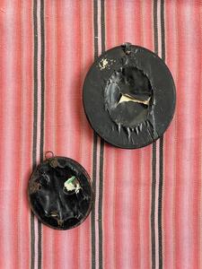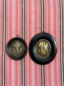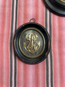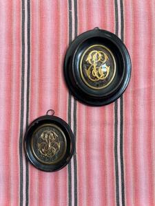 2 médaillons reliquaires d’époque Napoléon III. Monogrammes. 10,5 cm x 9 cm et 7,5 cm x 6,5 cm.