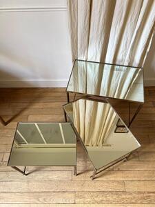 3 tables gigognes laiton miroir 1950