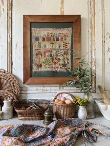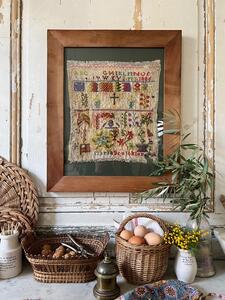 Abécédaire XIXème encadré. Large baguette noyer clair. 58 cm x 48 cm.