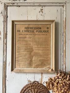 Affiche officielle de répression de l’ivresse. Encadrement d’origine. Vers 1950. Hauteur 60 cm. Largeur 50 cm.