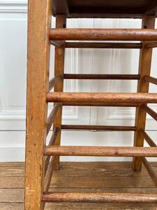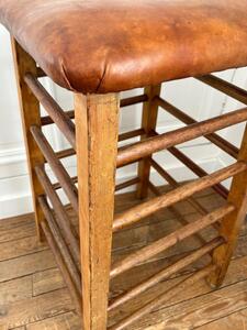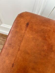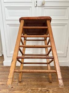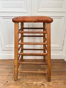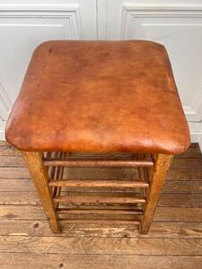 Agrès de gymnastique. Hêtre et cuir. Assise refaite à neuf avec un cuir ancien. Vers 1950. Assise 46 cm x 46 cm. Base 53 cm x 53 cm. Hauteur 86 cm.