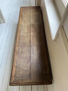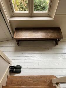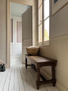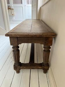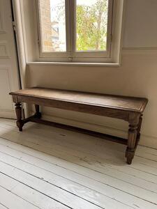 Banc en chêne. Pieds cannelés. Vers 1900. Longueur 129 cm. Largeur 38,5 cm. Hauteur 45 cm.