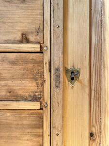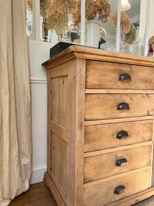 Buffet de campagne. 5 tiroirs, 1 porte. Clé fonctionnelle. Sapin brut. Longueur 113 cm. Largeur 52 cm. Hauteur 90 cm.