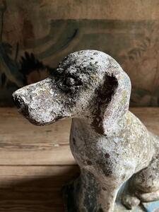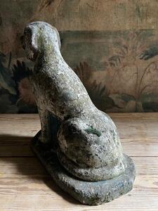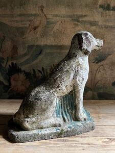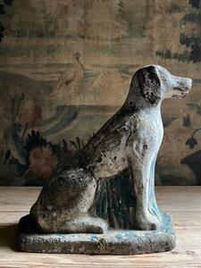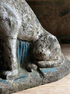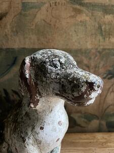 Chien en ciment. Patine d’origine. Vers 1950. Longueur 55 cm. Largeur 27 cm. Hauteur 52 cm.