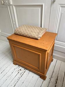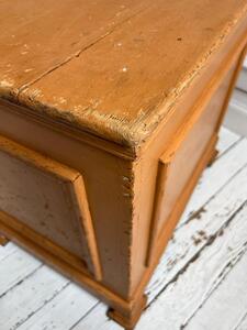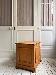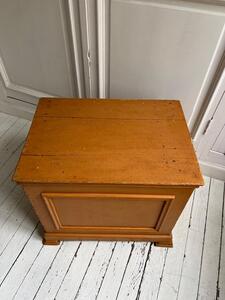 Coffre panneauté XIXème. Patine d’origine ocre brun. Longueur 63 cm. Largeur 45 cm. Hauteur 56 cm.
