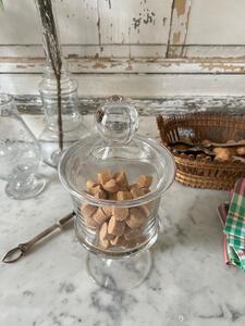 Drageoir, pot couvert. Verre. Vers 1930. Hauteur 26 cm. Diamètre 12 cm.