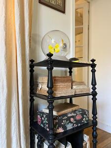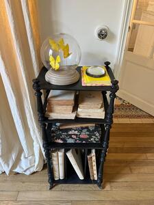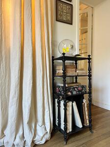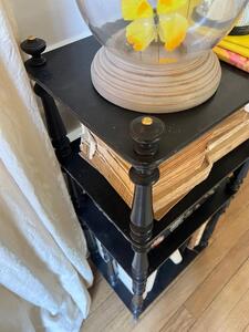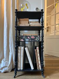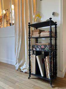 Meuble-étagère à partition d’époque Napoléon III. Bois tourné noirci. Roulettes. Longueur 42 cm. Largeur 29 cm. Hauteur 96 cm.