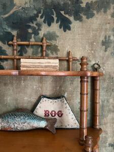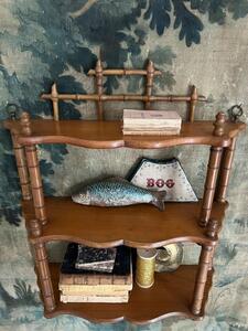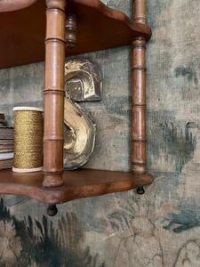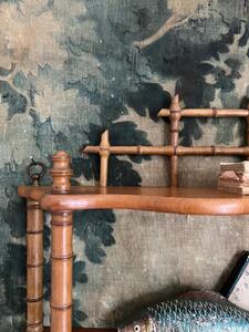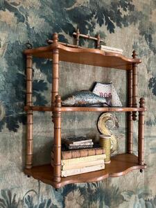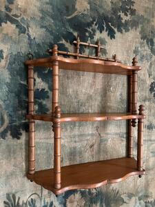 Étagère à poser ou à suspendre. Bois faux-bambou. Vers 1880. Longueur 55 cm. Hauteur 61 cm. Profondeur partie basse 18 cm, profondeur partie haute 15 cm.