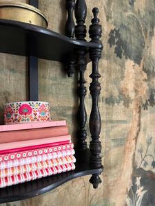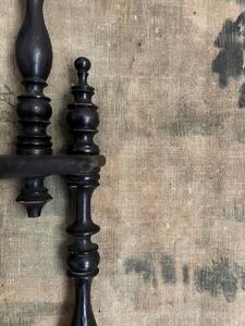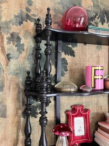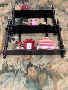 Étagère en bois tourné noirci. Époque Napoléon III. À poser ou à suspendre. Hauteur 65 cm. Longueur 64 cm. Profondeur 16 cm.