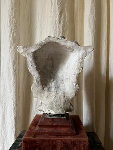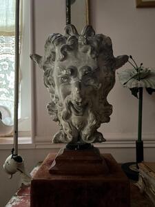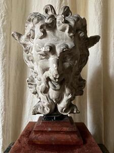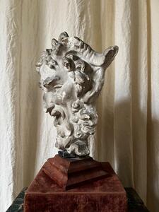 Faune en plâtre XIXème. Socle en marbre (cassé, manque aux angles, voir photo). Hauteur 33 cm. Largeur 27 cm.