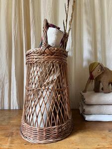 Grand panier oblong en osier tressé. Vers 1950. Hauteur 70 cm. Longueur 55 cm. Largeur 36 cm.