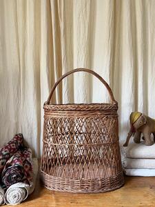 Grand panier oblong osier 1950