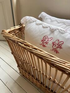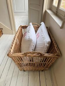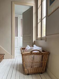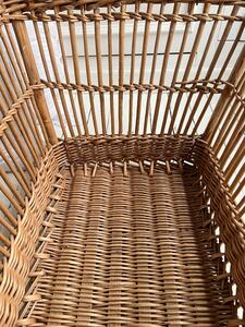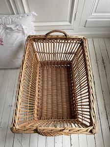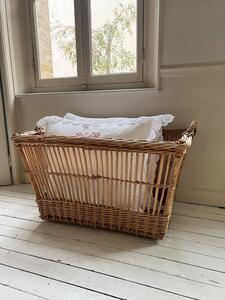 Grande corbeille à linge en osier. Armature bois et métal. Vers 1940. Longueur 90 cm. Largeur 60 cm. Hauteur 50 cm, et 55 cm y compris poignées.