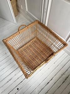 Grande corbeille en osier. Vers 1940. 80 cm x 80 cm. Hauteur 46 cm.