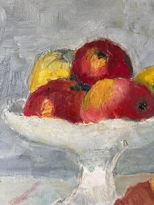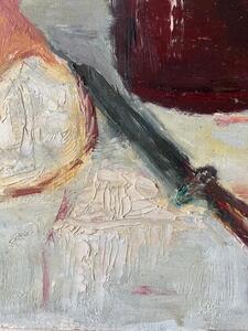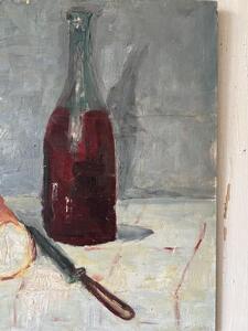 Huile sur panneau. Nature morte. Vers 1950. 46 cm x 33 cm.
