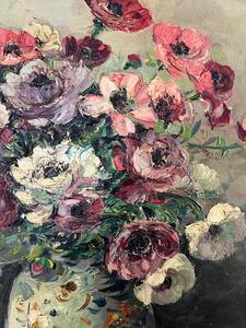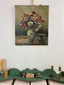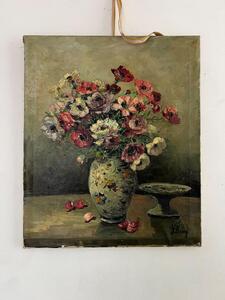 Tableau bouquet. Huile sur toile sur châssis à clés. Vers 1930. 60 cm x 50 cm.