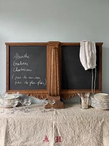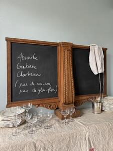 Importante ardoise d’hôtel-restaurant. Chêne. Vers 1880. Longueur 131 cm. Hauteur 85 cm. Profondeur 20 cm.