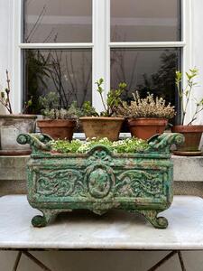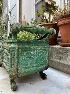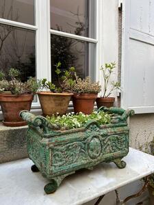 Jardinière en fonte XIXème. Patine d’origine. Longueur 56 cm. Largeur 24 cm. Hauteur 31 cm.