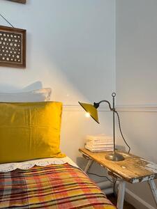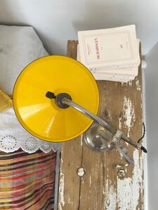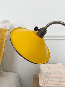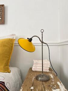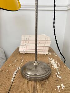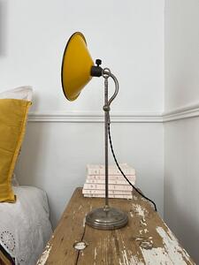 Lampe ajustable en acier nickelé. Base fonte. Inclinaison et hauteur réglables. Électricité refaite à neuf. Réflecteur neuf en tôle émaillée. Vers 1920. Hauteur 47 cm. Envergure 30 cm. Diamètre base 13 cm. Diamètre réflecteur 22 cm.