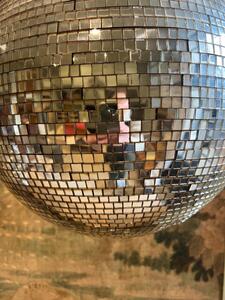 Large boule à facettes. Monture laiton. Vers 1970. Diamètre 50 cm + chaîne selon besoin.