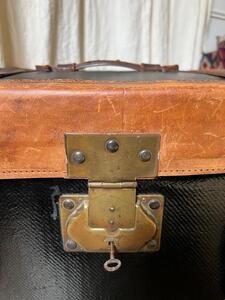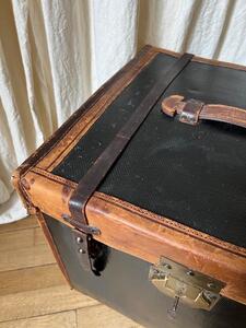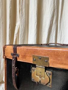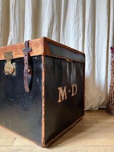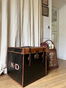 Malle chiffrée XIXème toile enduite, cuir, laiton
