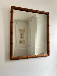 Miroir bois façon bambou. Dos bois d’origine. Attache au dos. Vers 1900. 79 cm x 66 cm. Épaisseur 4,5 cm.