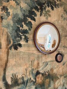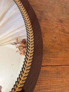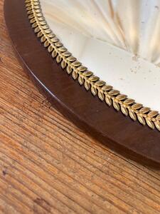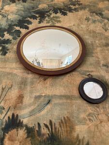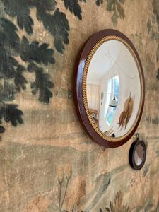 Miroir convexe de style Empire. Acajou et couronne de feuilles de laurier bronze. Vers 1950. Diamètre 36 cm. Épaisseur 5 cm.
