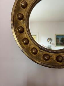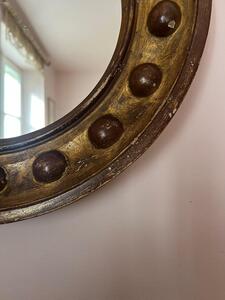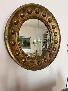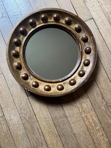 Miroir rond fin XIXème. Quelques manques de dorure. Diamètre 44 cm. Épaisseur 4,5 cm.