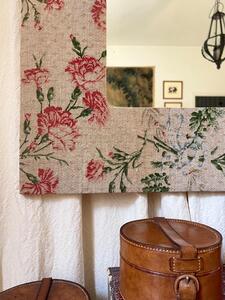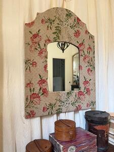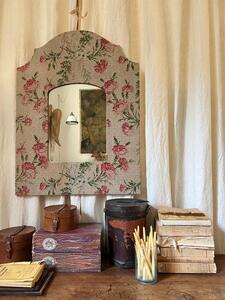 Miroir XIXème, époque NIII. Gainé à neuf d’une toile ancienne, motifs œillets. Hauteur 81 cm. Largeur 61 cm. Épaisseur 2 cm.