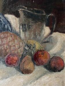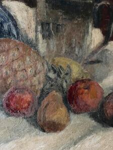 Nature morte. Huile sur toile marouflée sur panneau. Vers 1880. 65 cm x 54 cm. Épaisseur 2 cm.