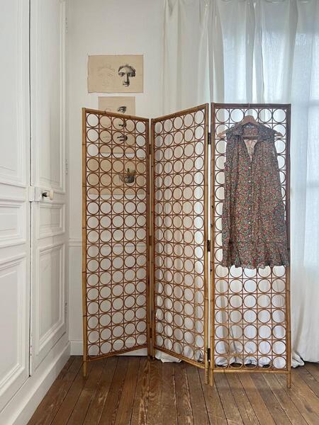 Paravent 3 feuilles rotin 1950