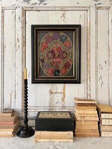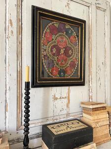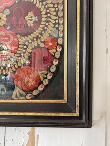 L’ouvrage de broderie XIXème. Encadrement d’origine. 64 cm x 54 cm. Épaisseur 4 cm.