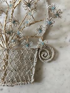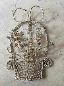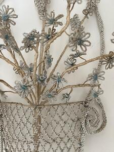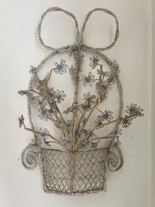 Ouvrage du souvenir. Fil de fer et parles. Coupe fleurie. Vers 1880. Hauteur 50 cm. Largeur 32 cm.