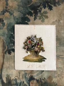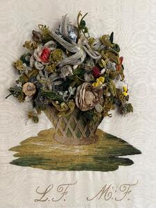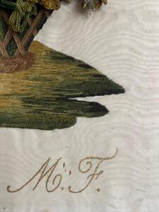 Ouvrage XIXème. Textile, broderie, fil doré. Sur carton gainé. Hauteur 47 cm. Largeur 43 cm.