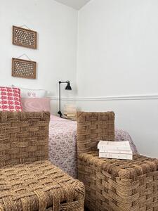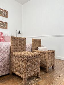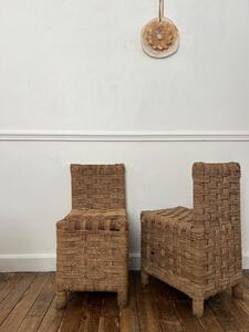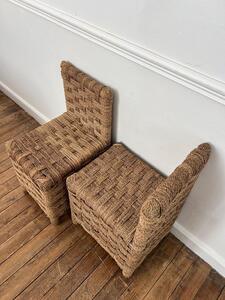 Paire chaises en corde tressée. Vers 1960. Largeur 36 cm. Profondeur 43 cm. Hauteur assise 42 cm. Hauteur dossier 70 cm.