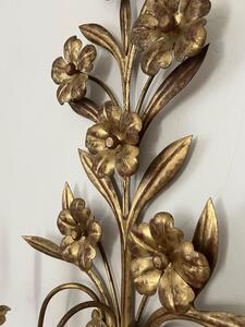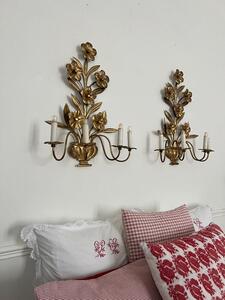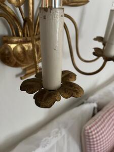 Paire de grandes appliques en métal doré patiné. 4 bras de lumière. Vers 1970. Électricité ok. Hauteur 70 cm. Longueur 55 cm. Profondeur 20 cm.