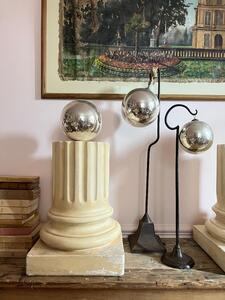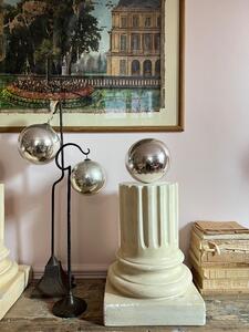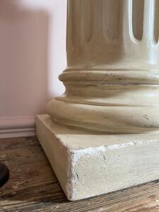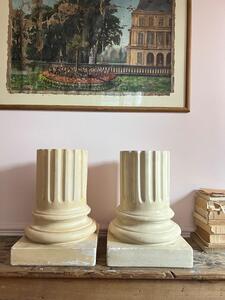 Paire de colonnes à l’antique. Piédestaux néoclassiques. Plâtre. Fûts cannelés. Patine d’origine. Hauteur 42 cm. Base carrée 39 cm x 30 cm. Col diamètre 21 cm. Vers 1950.