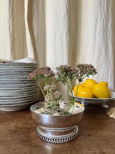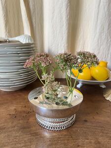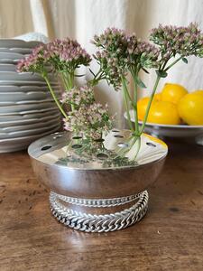 Pique-fleur en métal argenté Hermès. Vers 1970. Pounçon d’orfèvre RD, pour Ravinet / D’Enfert. Diamètre 14,5 cm. Hauteur 7,5 cm.