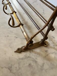 Porte-manteau / chapeau / accessoires en laiton. Vers 1920. 6 patères mobiles. Longueur 100 cm. Hauteur 20 cm. Profondeur 27 cm.