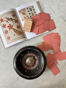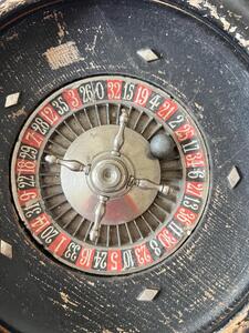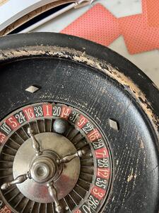 Roulette parisienne de table. Bois noirci et métal. Vers 1900. Diamètre 25 cm. Hauteur 7 cm.