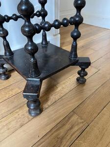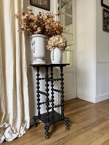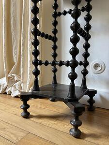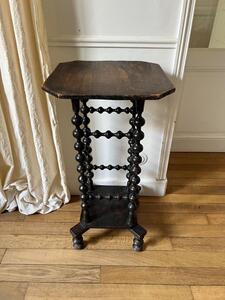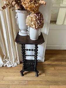 Sellette d’époque Napoléon III. Bois tourné noirci. Plateau à pans coupés. 37 cm x 36 cm. Hauteur 71 cm.