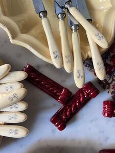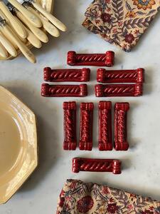 Service 10 porte-couteaux. Céramique. Vers 1960. Longueur 9 cm. Largeur 2,5 cm. Hauteur 2 cm.