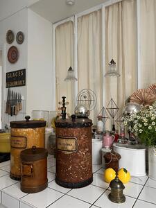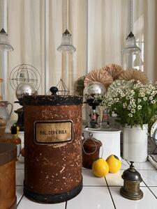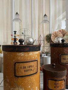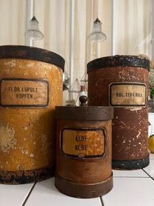 Set de 3 pots couverts d’apothicaire. Bois et carton bouilli. Patine d’origine.