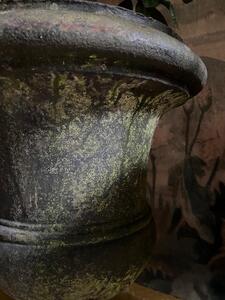 Suite de 3 grands vases de jardin en fonte d’époque Directoire. Fin XVIIIème / début XIXème. Patine d’origine. Hauteur 60 cm. Diamètre 46 cm. Base 24 cm x 24 cm.