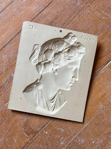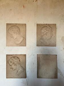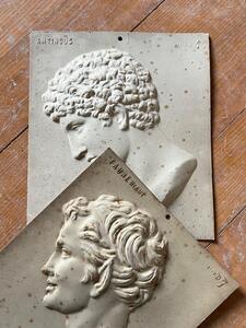 Suite de 12 profils à l’Antique. Carton embossé. Modèles dédiés au travail de reproduction et d’étude. Rousseurs éparses. 26 cm x 22 cm. Vers 1860.
