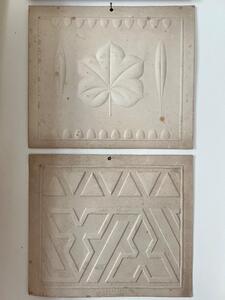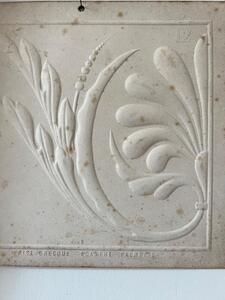 Suite de 4 modèles de dessins en relief, carton embossé. Motifs d’ornementation à l’Antique. 26 cm x 23 cm. Vers 1940.