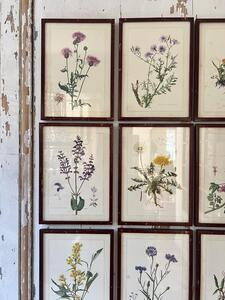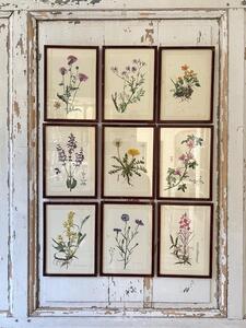 Suite de 9 planches botaniques encadrées. Encadrements d’origine. Quelques rousseurs. Mentions latines. Vers 1940. 28 cm x 20 cm.
