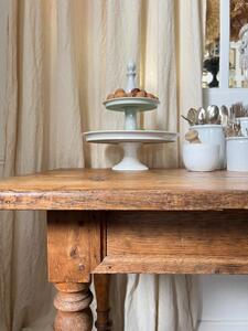 Table chêne, sapin, hêtre. Pieds tournés et plateau pans coupés vers 1900. Longueur 182 cm. Largeur 64 cm. Hauteur 75 cm. Hauteur sous ceinture 61 cm.