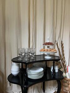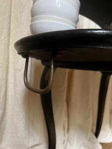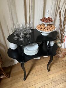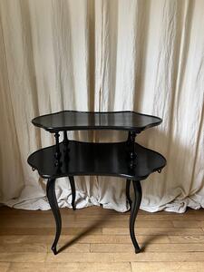 Table à thé / desserte XIXème. Époque NIII. Bois noirci, poignées laiton. Longueur 87 cm. Largeur 55 cm. Hauteur 82 cm.